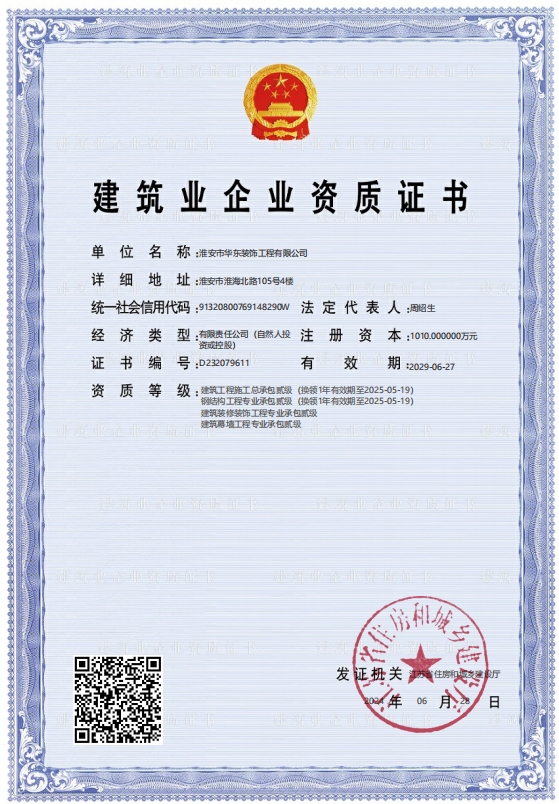 • 建筑業企業資質證書